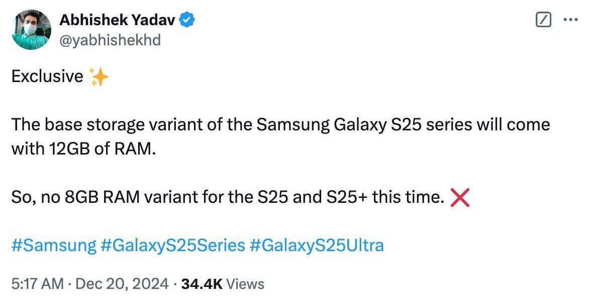- هیچ مدلی با رم ۸ گیگابایت برای گلکسی S25 اولترا و پایه عرضه نخواهد شد.